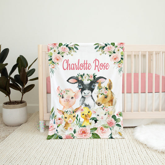 Farm Animals Floral Baby Girl Nursery Bedding Set