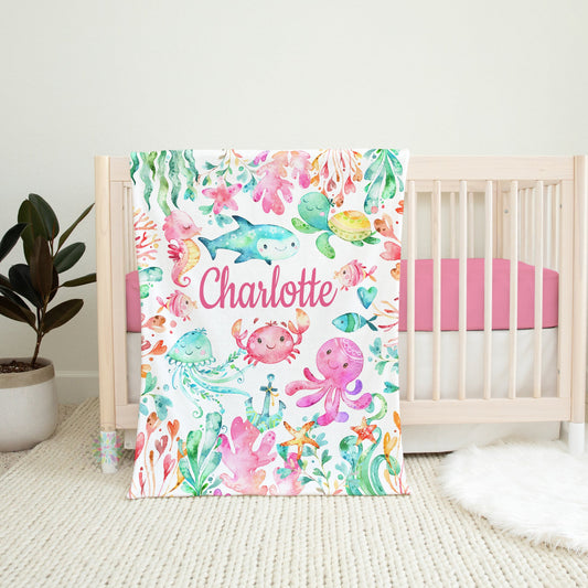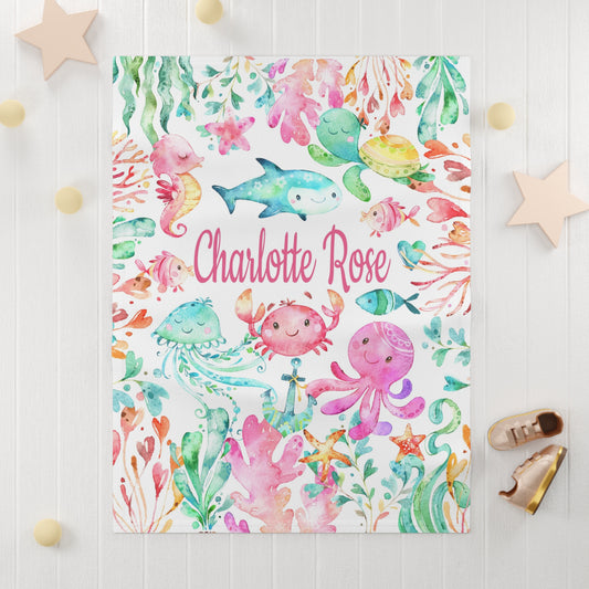 Personalized Sea Animals Ocean Baby Girl Blanket